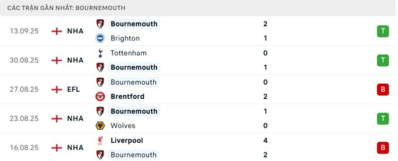 Đội bóng Bournemouth trước khi bước vào mùa giải năm nay được đánh giá chỉ là đại diện đua trụ hạng nhưng họ đã chứng minh điều ngược lại. Sau 4 lượt trận thì đội chủ nhà đã thu về tới 9 điểm và hiện đang đứng ở vị trí thứ 4 trên bảng xếp hạng. Lối chơi có tính gắn kết và sự thực dụng cao tiếp tục là chìa khóa dẫn họ hướng tới thành công.