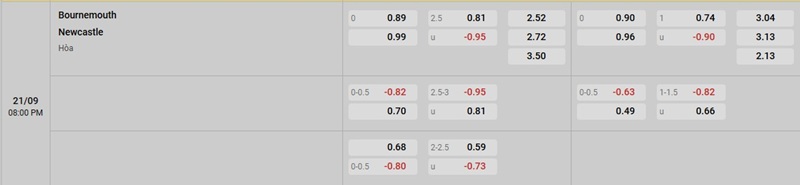 Soi kèo Bournemouth vs Newcastle qua tỷ lệ