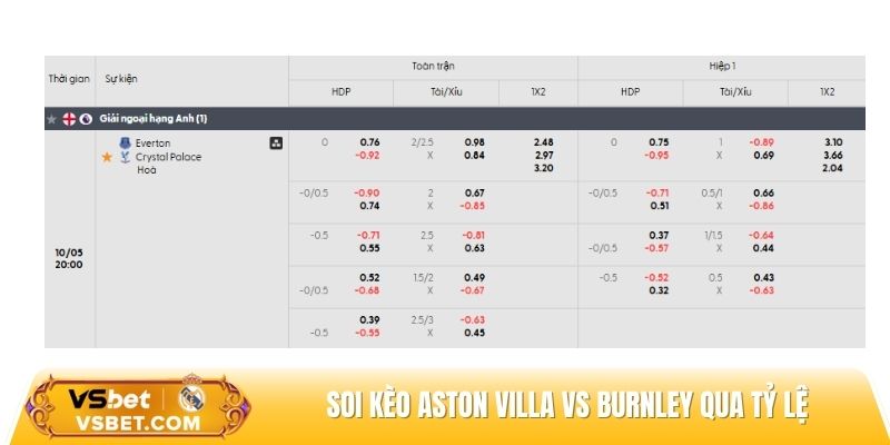 Soi kèo Everton vs Crystal Palace qua tỷ lệ