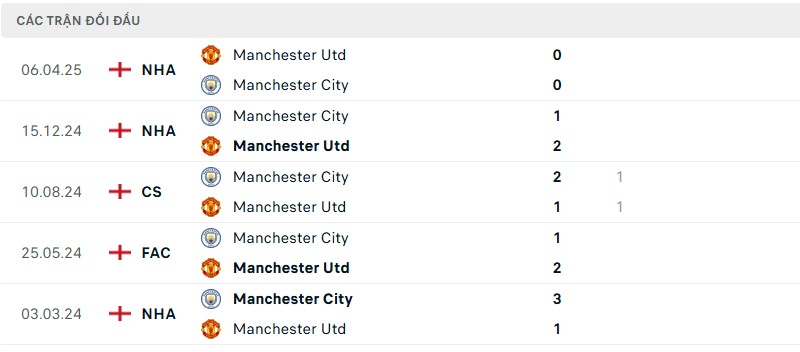 Lịch sử đối đầu gần đây giữa hai đội bóng thành Manchester đang rất cân bằng. Trong 6 lần gặp nhau gần nhất trên mọi đấu trường, mỗi đội giành được 2 chiến thắng và có 2 trận hòa. Riêng tại Premier League Man City có phần nhỉnh hơn một chút.