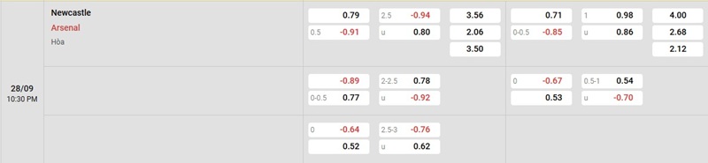 Soi kèo Newcastle vs Arsenal qua tỷ lệ