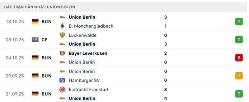Phong độ của Werder Bremen vs Union Berlin gần đây